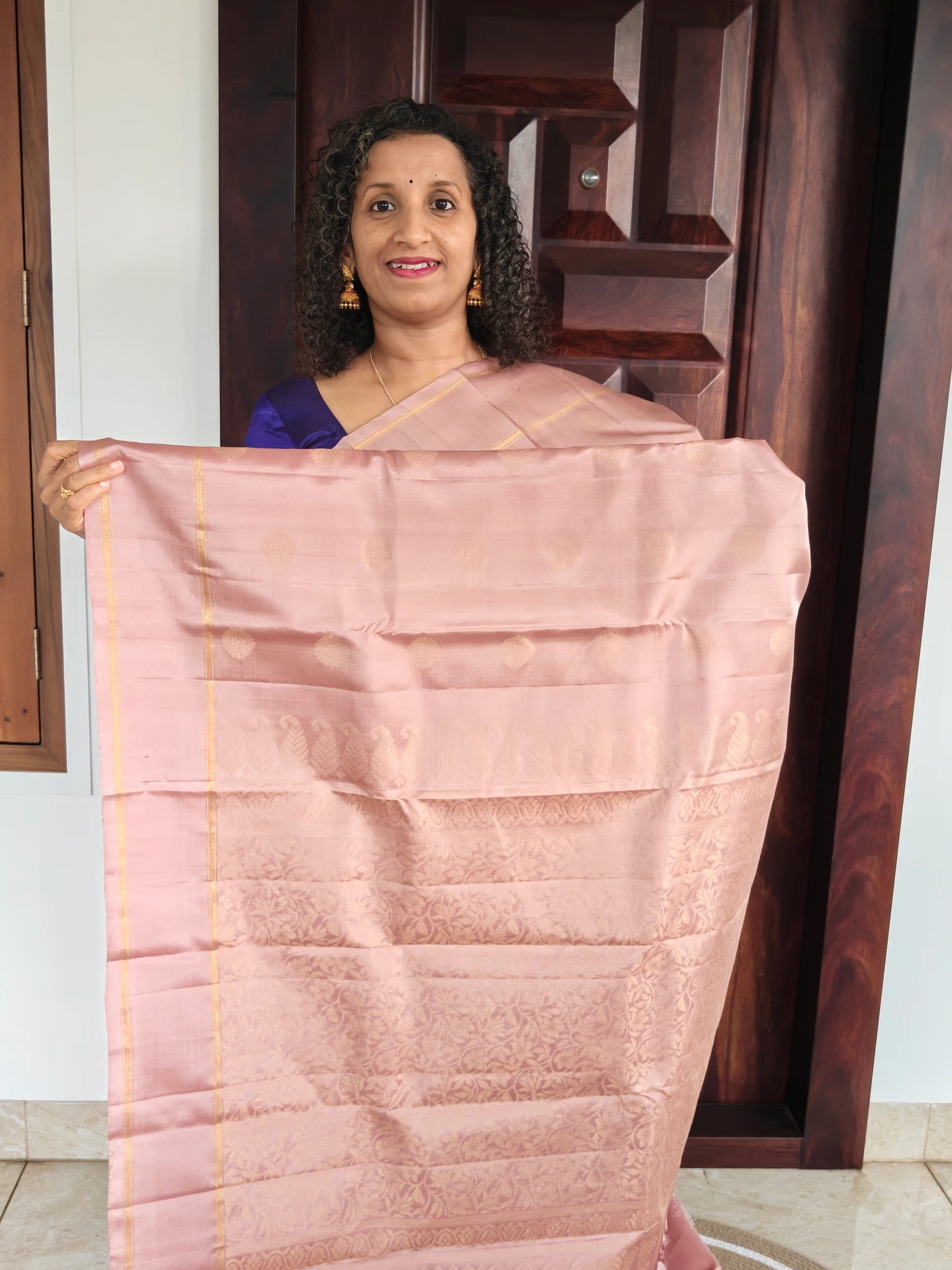 Crafted from pure Kanchipuram soft silk, the saree features a smooth texture, lightweight feel, and an elegant drape, making it ideal for extended wear. This saree is an excellent choice for women who prefer soft hues, minimal richness, and authentic Kanchipuram craftsmanship.