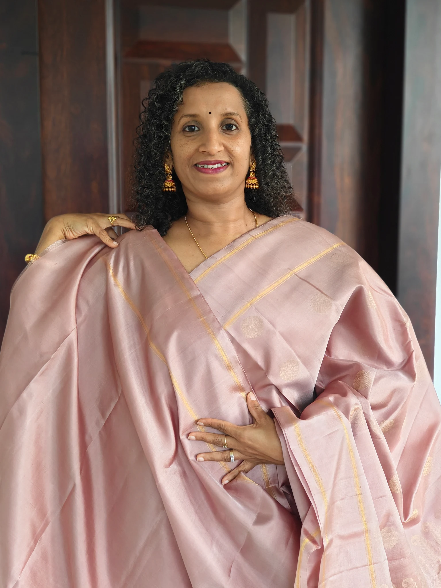This saree has Crafted from pure silk with silk mark certified. The soft color palette paired with traditional weaving makes this saree perfect for day weddings, festive occasions, poojas, receptions, and elegant gatherings.