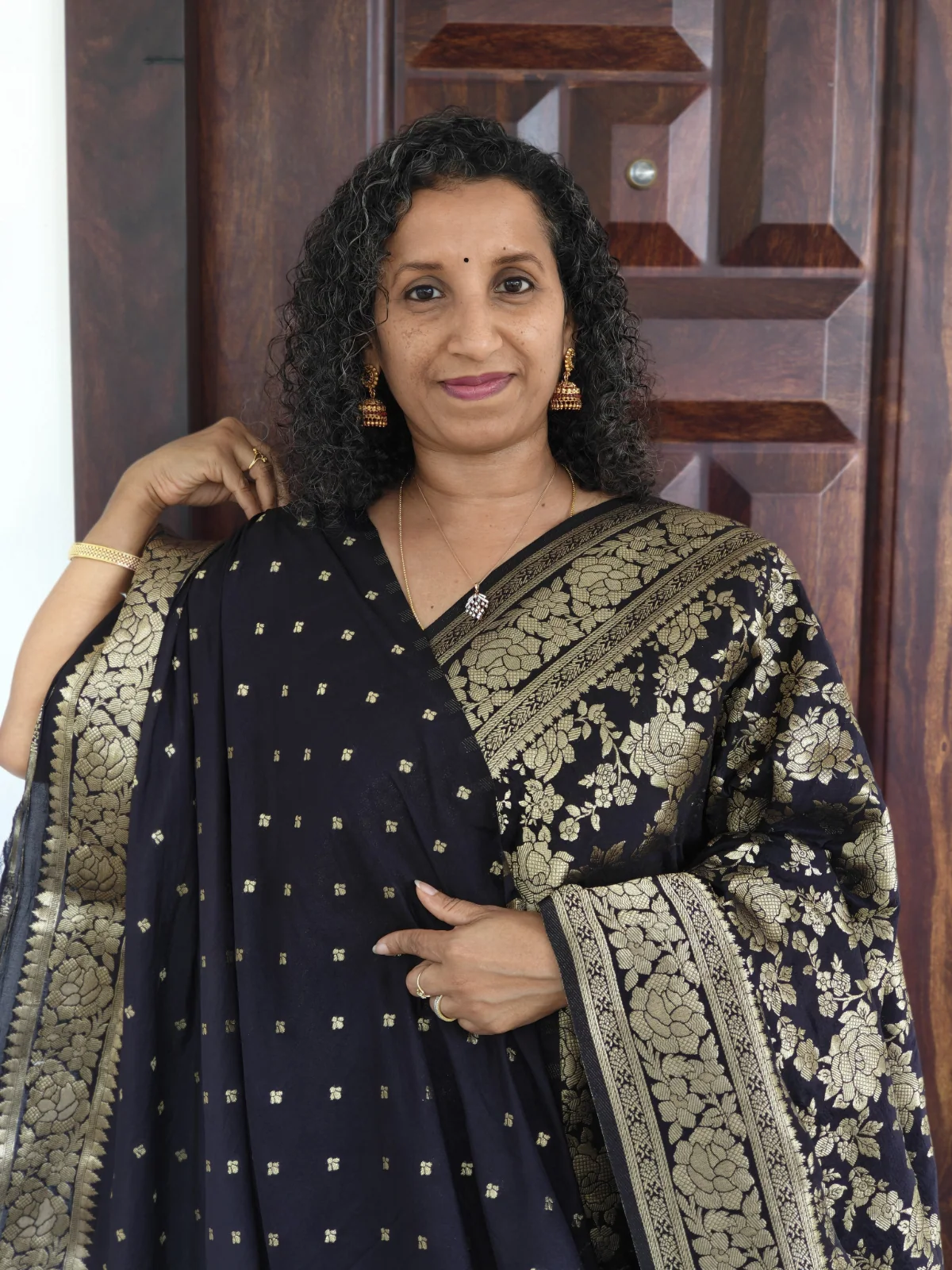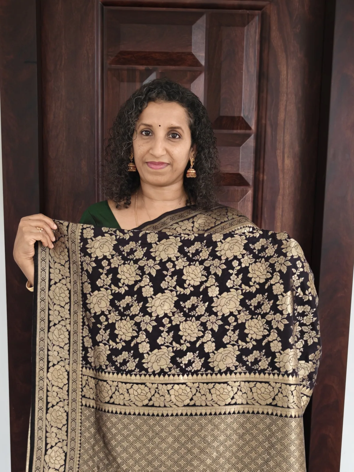 The deep black base beautifully contrasts with the shimmering zari work, making this saree an ideal choice for festive occasions, evening functions, weddings, and special celebrations. The smooth texture and soft drape of semi Katan silk ensure all-day comfort while maintaining a regal silhouette.