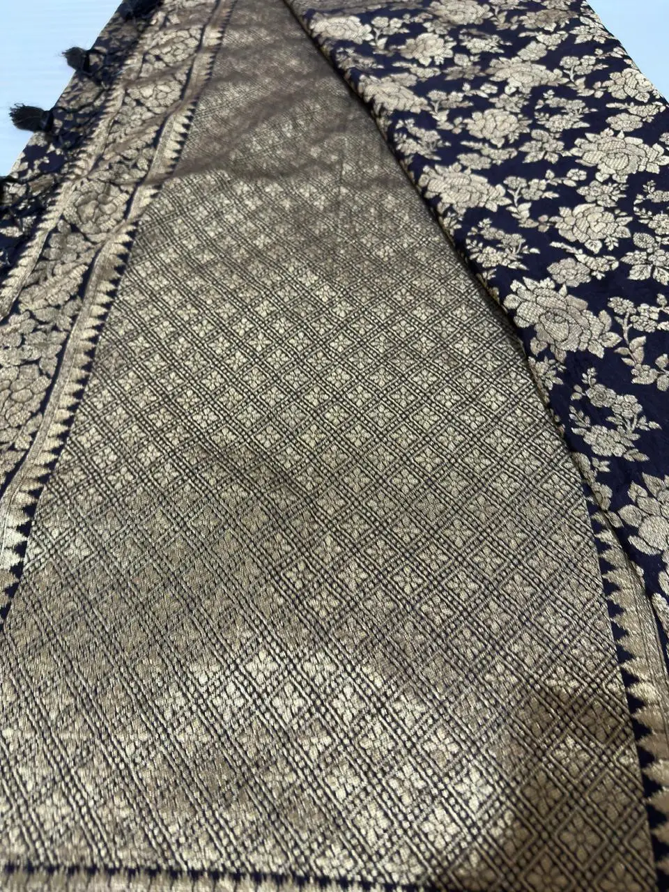 Finished with a traditional Banarasi border and richly detailed pallu, this saree reflects timeless heritage and refined taste.