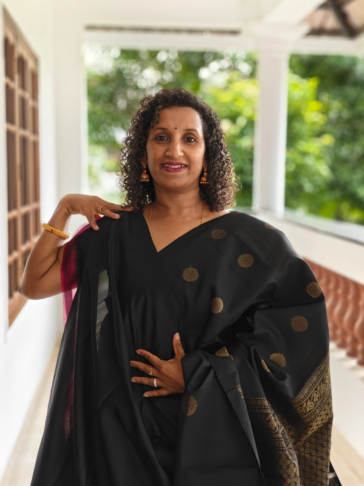 Classic Black Kanchipuram Soft Silk Saree with floral buttas with Silk Mark Certified