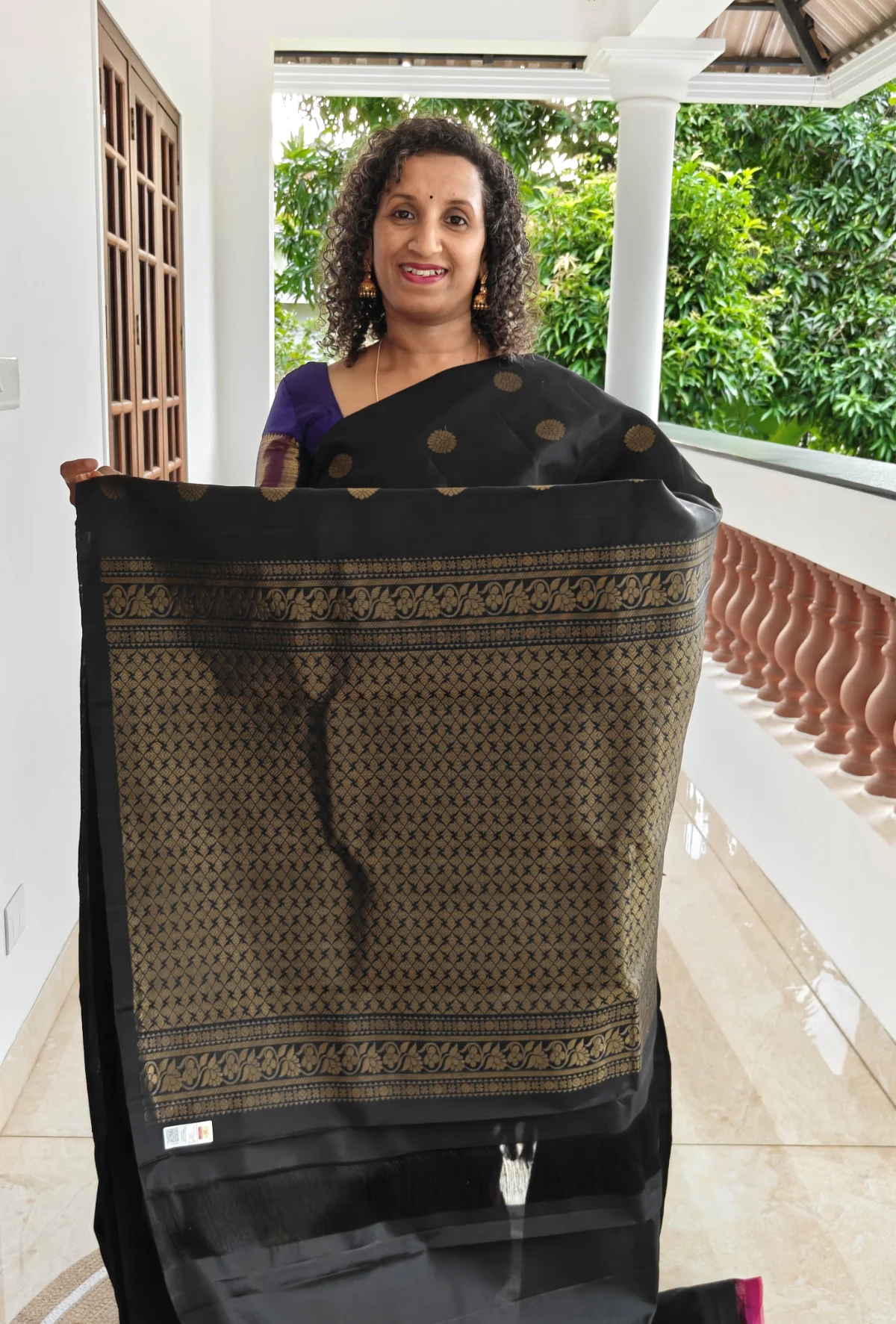 The deep black body creates a striking contrast against the traditional woven motifs, while the lightweight soft silk texture ensures comfort without compromising on richness.