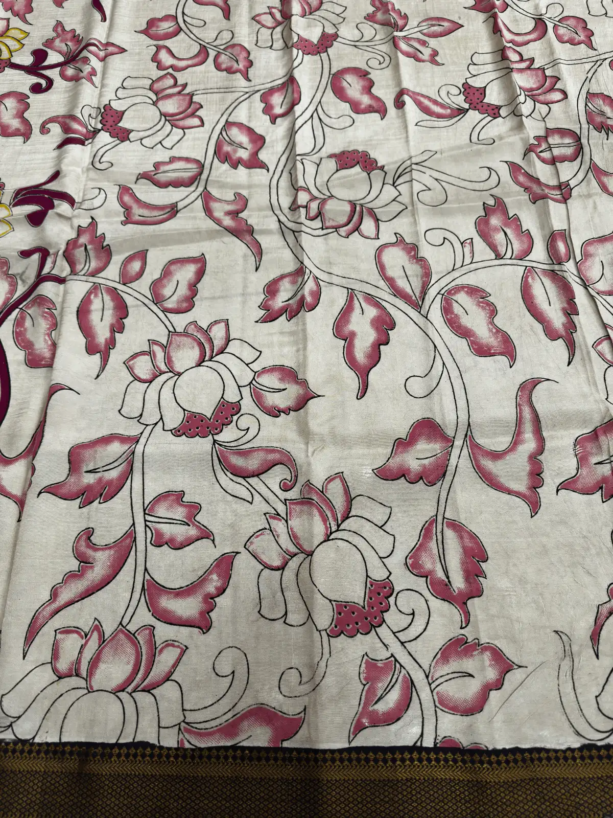 Cream and Rani Pink Lotus Kalamkari Silk with Nizam Border Saree