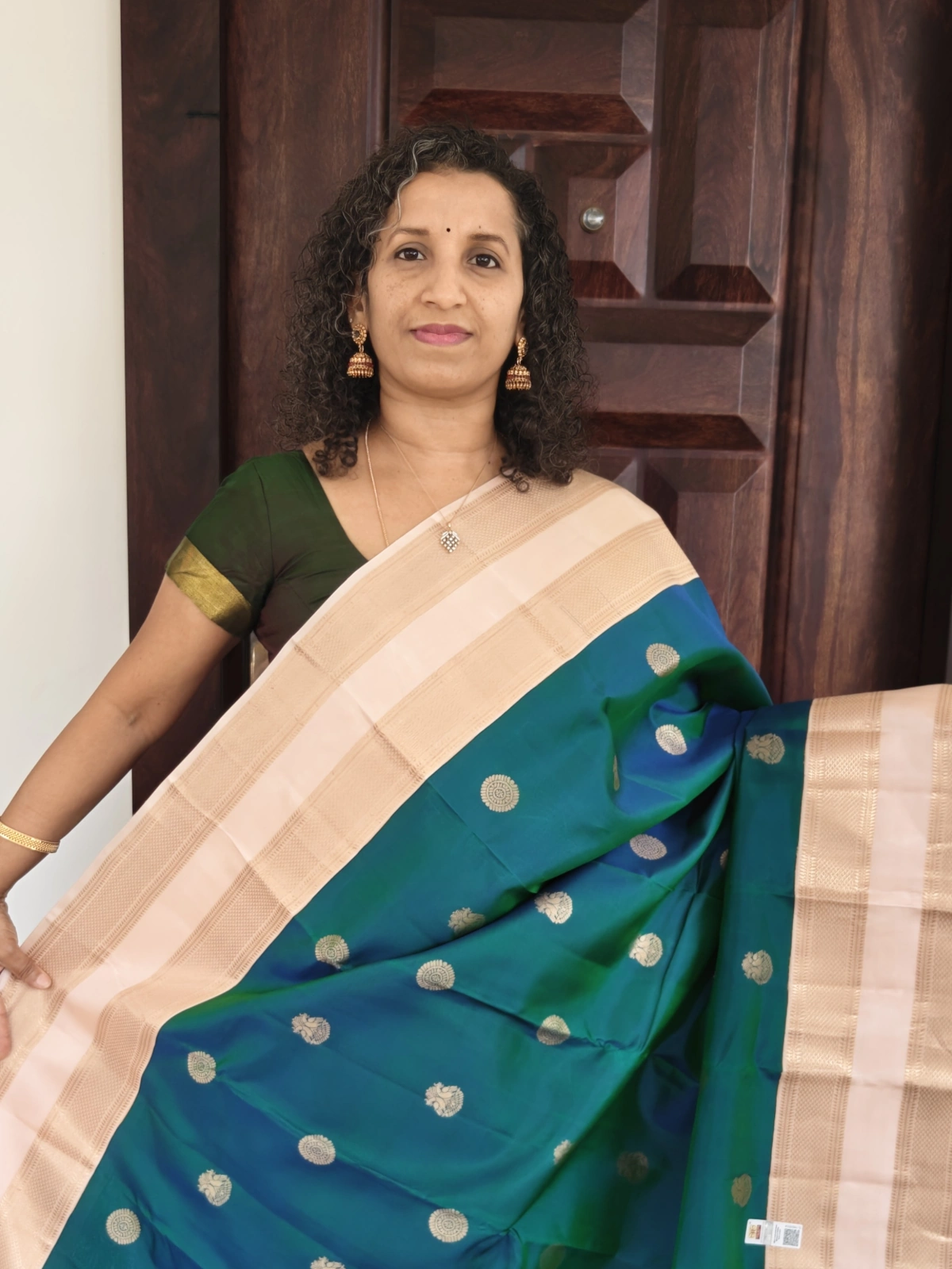 Style Tip: Pair it with a contrasting blouse and traditional gold or antique jewelry for a sophisticated, regal look.